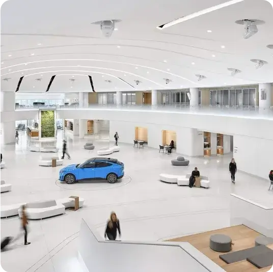 Located at Ford Motor Company’s headquarters in Dearborn, Michigan, the Ford Experience Center is a modern workspace designed to support collaboration, innovation, and employee engagement. While the center hosts vehicle launches, leadership events, and company conferences, it also serves as one of the most thoughtfully designed work environments on the Ford campus.